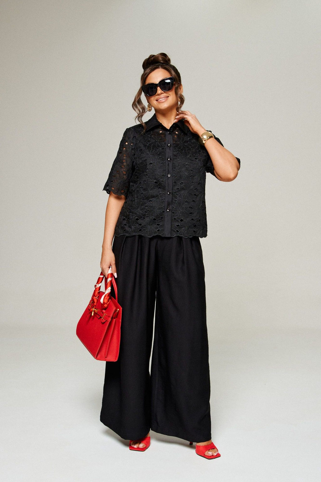 Комплект 6323 чёрный, Брюки, Блуза