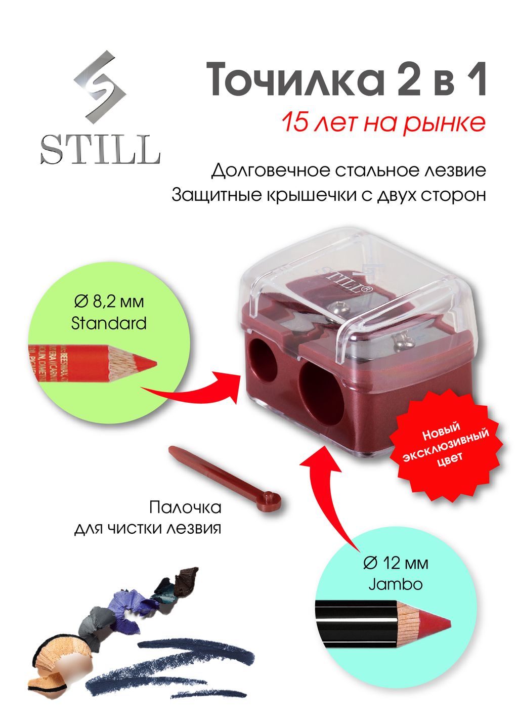 Still Точилка Sharpener-2 для косметических карандашей с контейнером, двойная бордовая