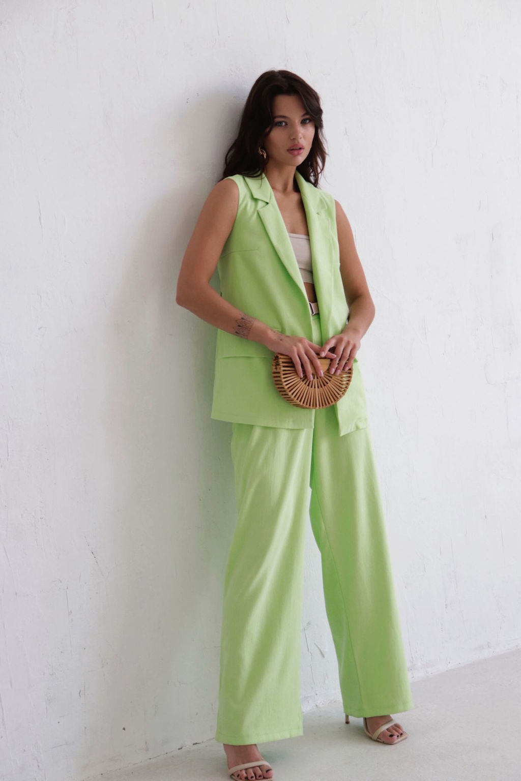 Брючный костюм с жилетом светло-фисташковый