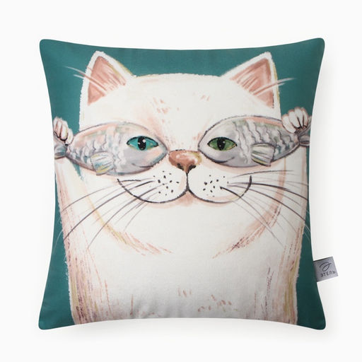 Подушка Этель "Счастливый котик" 40х40 см, велюр, 100% п/э