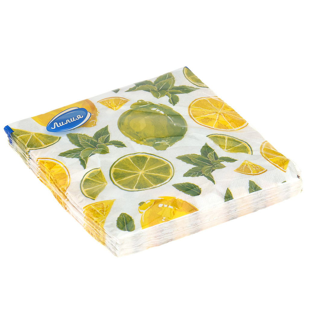 Салфетки бумажные 33х33см "Лилия", 2-х слойные, 20 штук в упаковке, "Мохито" (Россия)