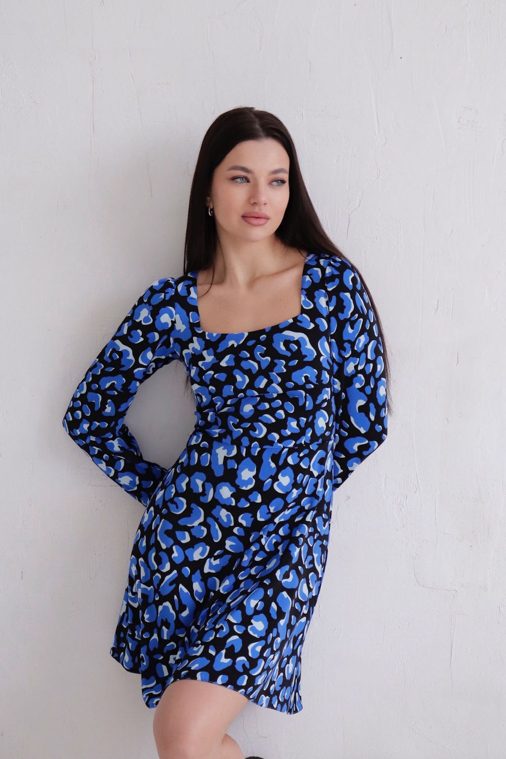 Платье с вырезом "каре" чёрно-синее