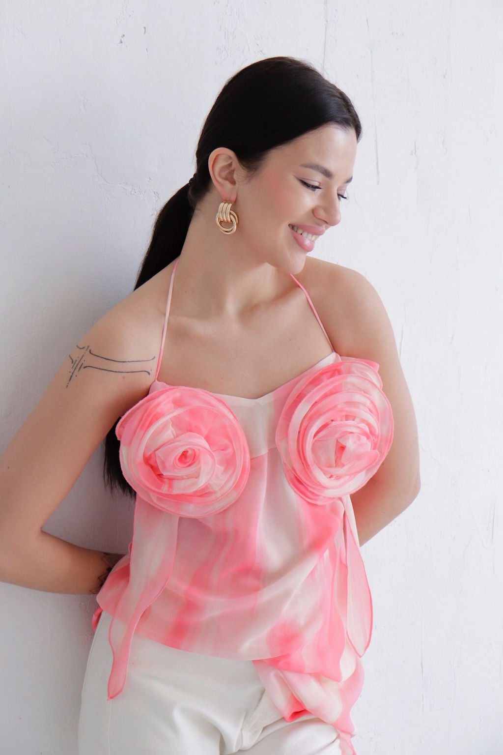 Топ с декором розовый