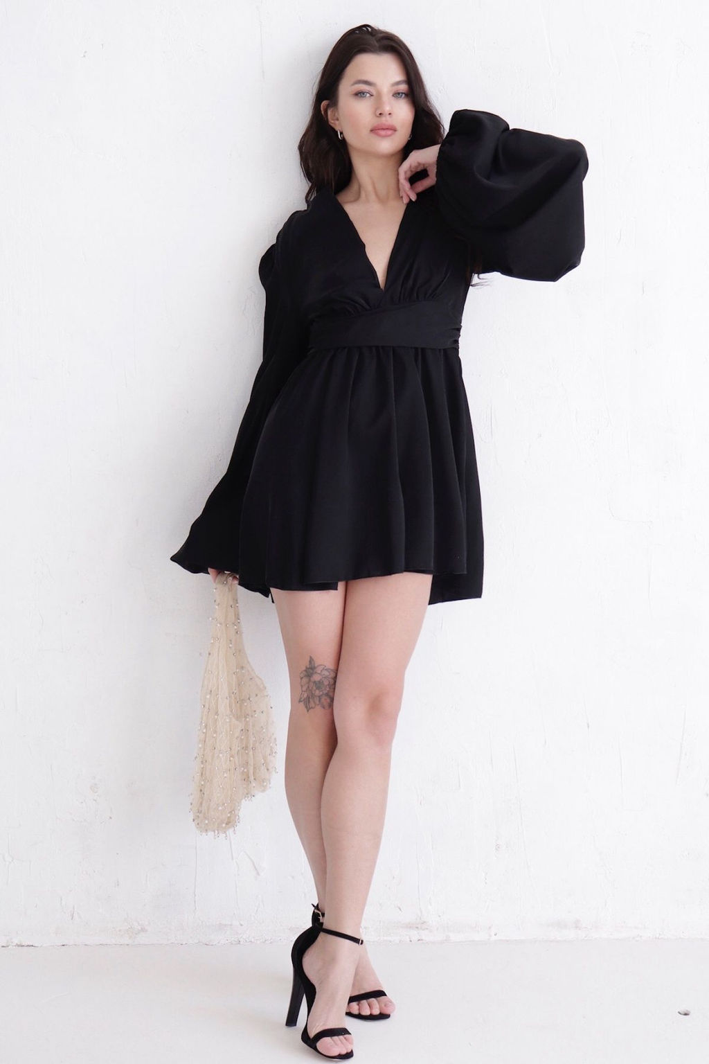 Платье чёрное с пышными рукавами