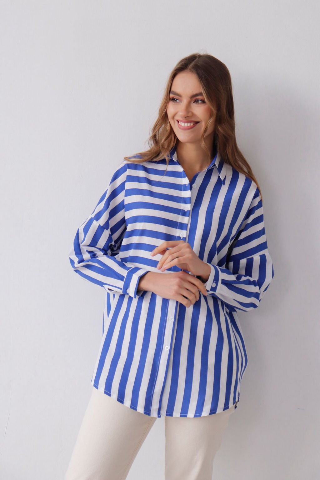 11351 Рубашка в полоску бело-голубая