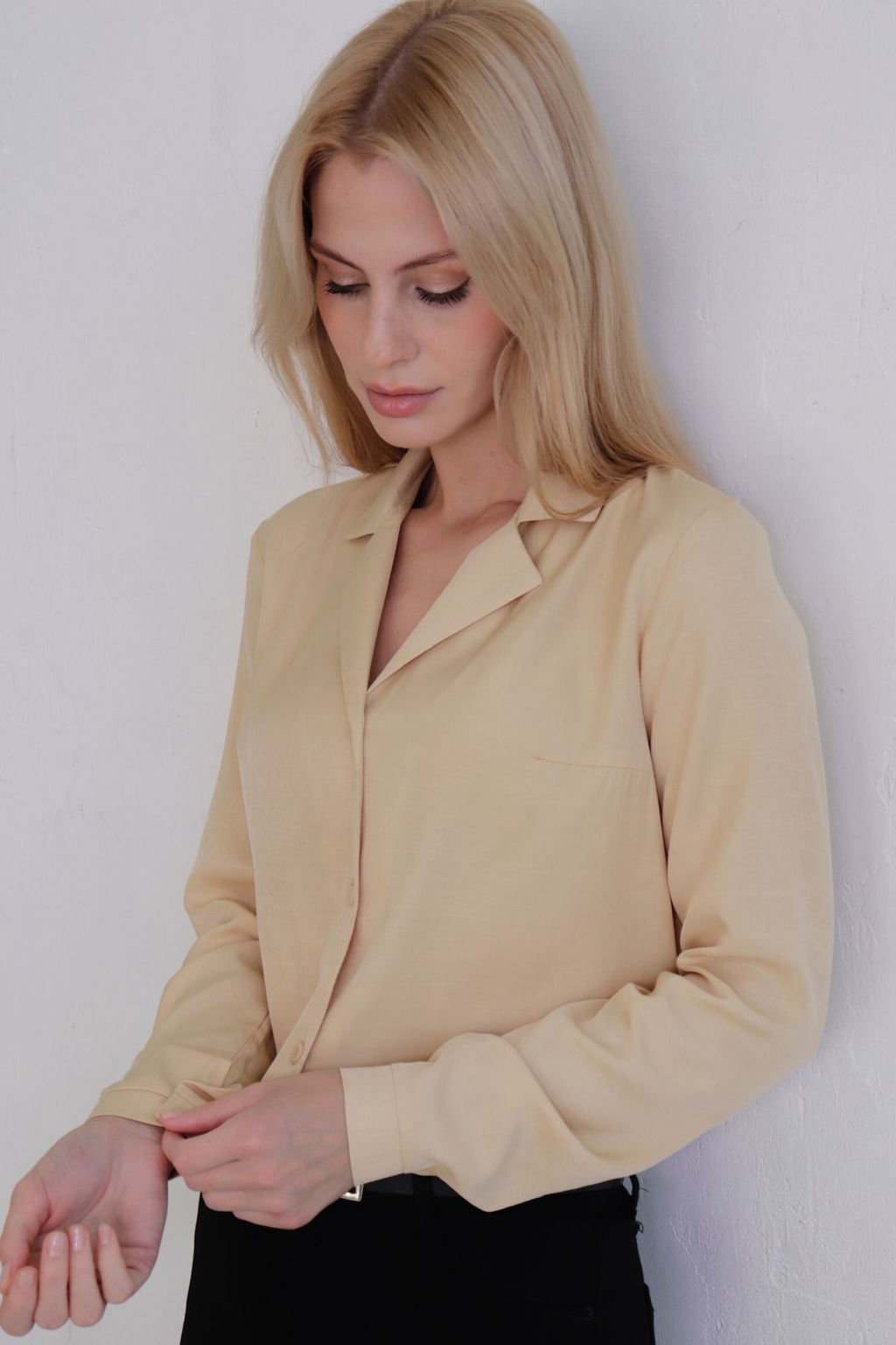 10787 Блуза с английским воротником в палевом оттенке