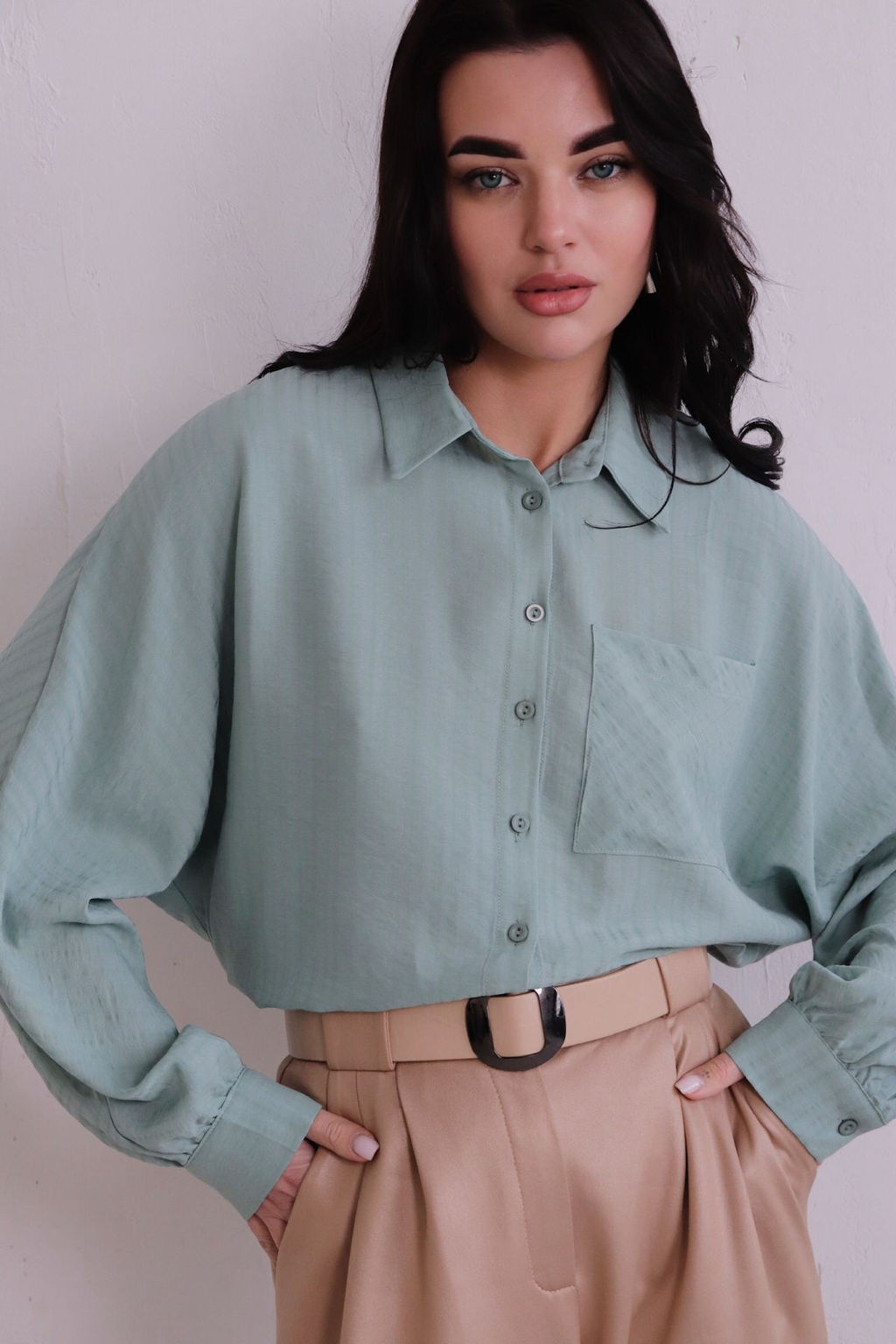 11163 Рубашка мятная из вискозы