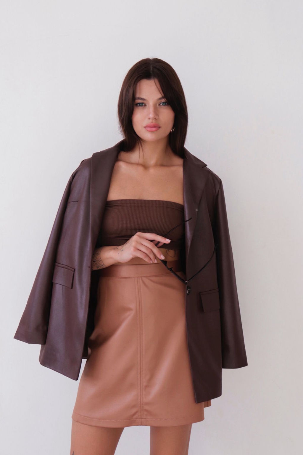 9738 Мини-юбка под кожу светло-коричневая