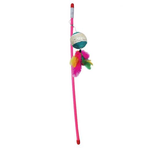 Дразнилка удочка Шар сизаль с перьями 50 см Триол 22121028