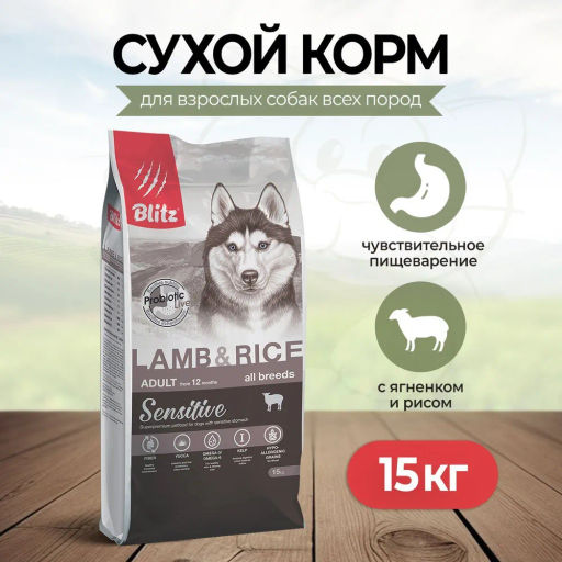 BLITZ ADULT Lamb&Rice Sensitive ягненок рис для взрослых собак 15 кг BDD06-3-15000