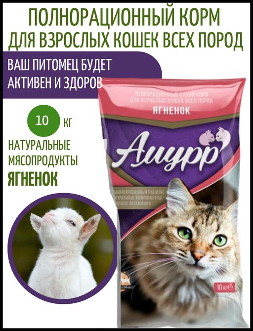 Амурр cухой корм для кошек Ягнёнок 10 кг. 4640021012291