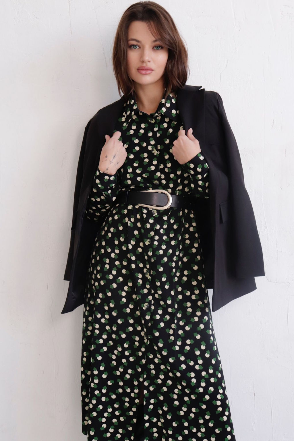 11128 Платье-рубашка удлинённое чёрное с принтом
