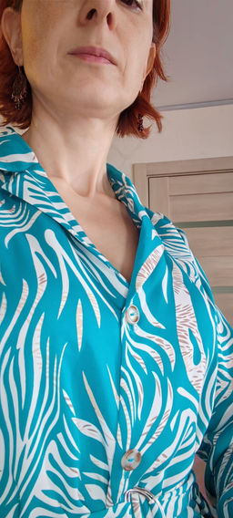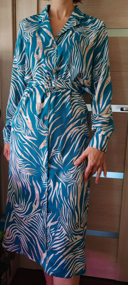 11638 Платье-рубашка с английским воротником бирюзово-белое
