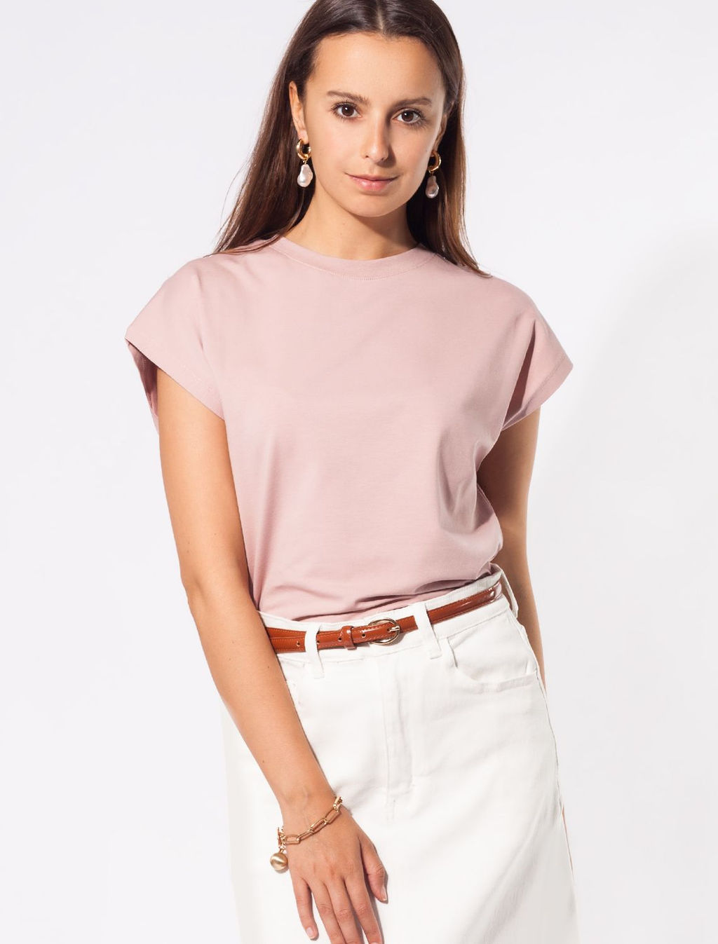 Футболка из премиального хлопка со спущенным плечом