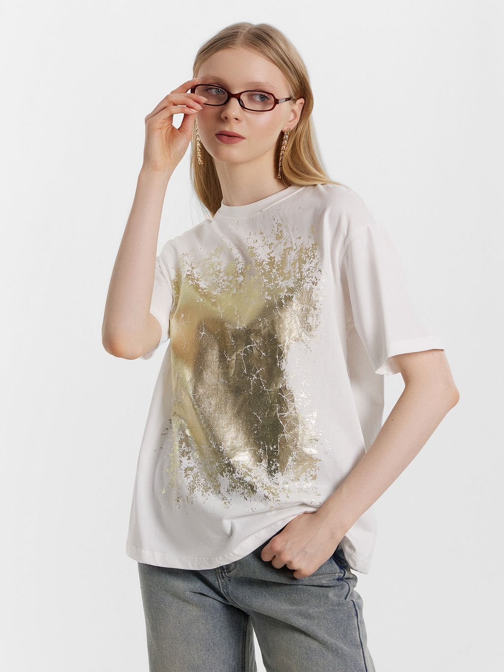 Футболка женская белая с золотистой отделкой белый +печать6 112678