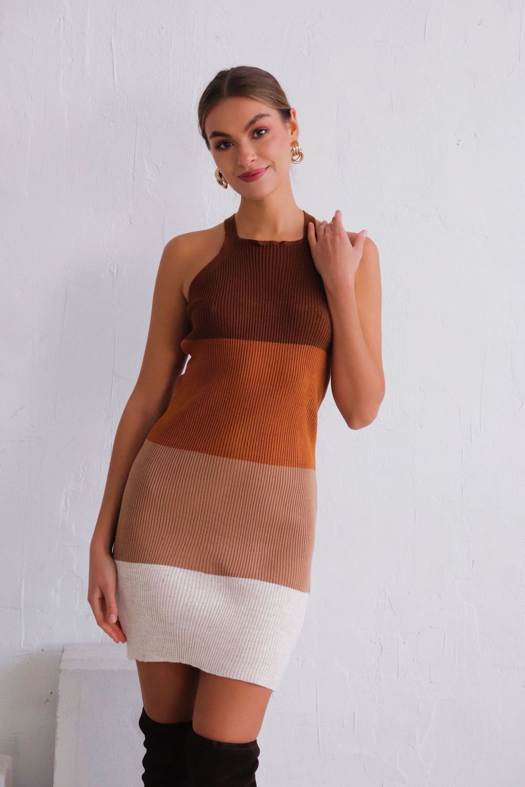 11169 Платье вязаное в коричневых тонах