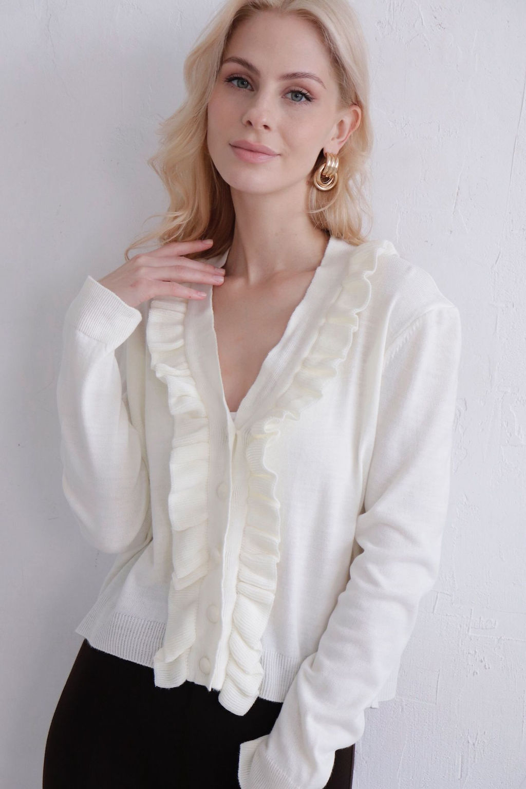 11496 Кардиган с рюшей молочный