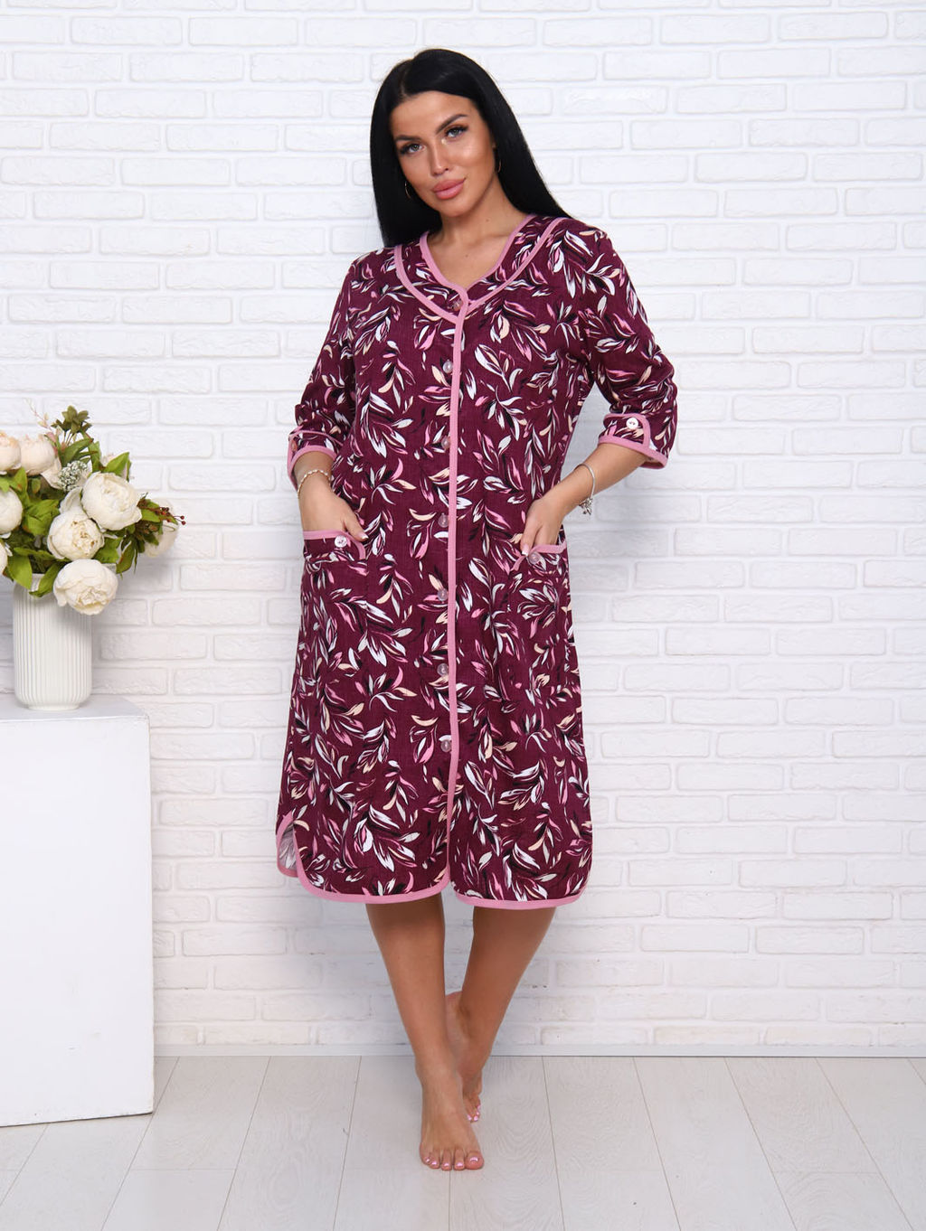 Халат женский на пуговицах с карманами, бордо (958-1)