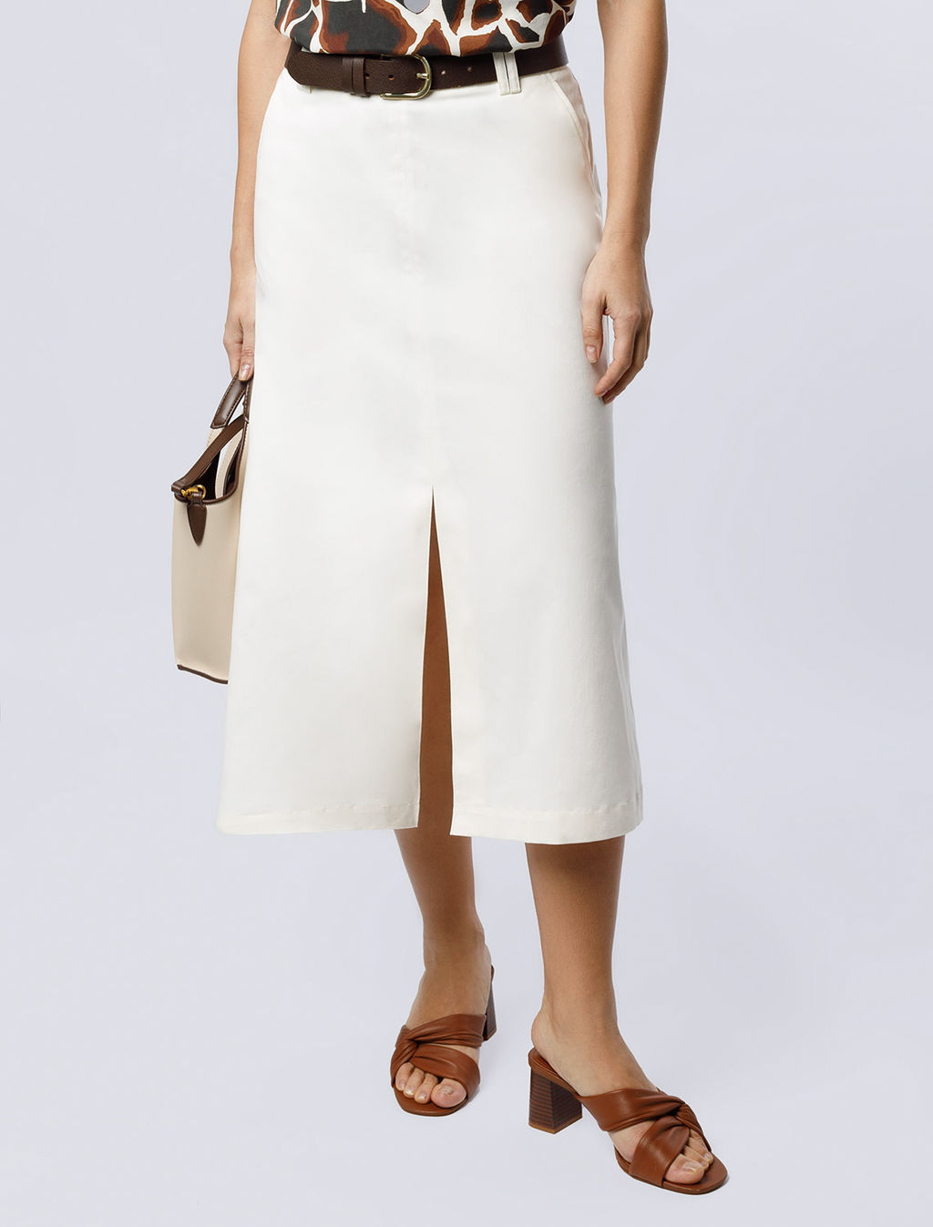 Юбка-миди Vilatte из хлопка с разрезом белая