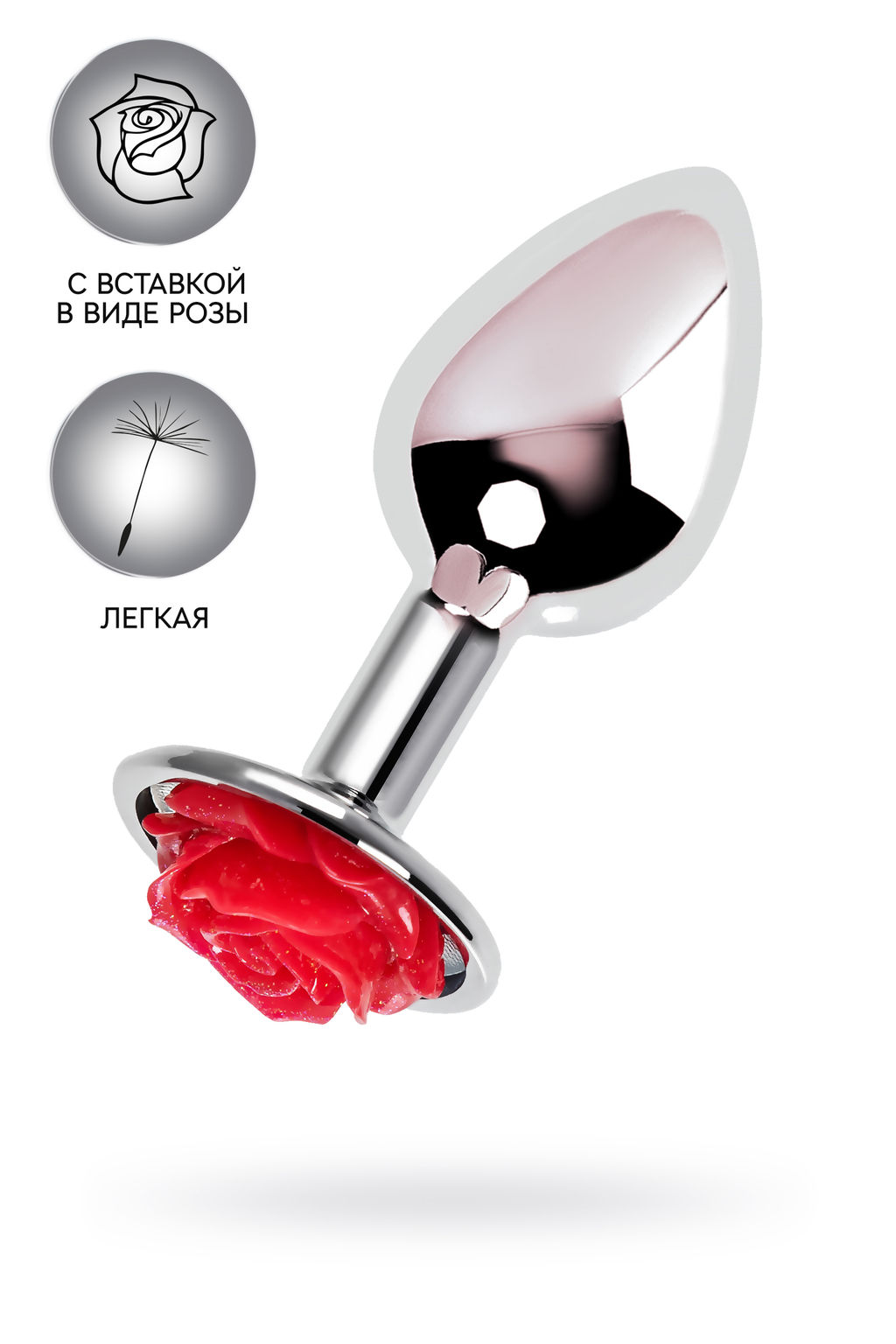 Анальная втулка Metal by TOYFA, металл, серебристая с красной розочкой, 8 см, 2,7 см, 48 г
