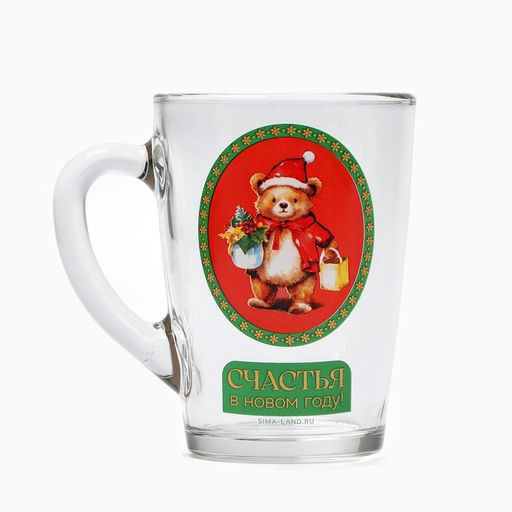Кружка стеклянная новогодняя Дорого внимание Мишка, 300 мл