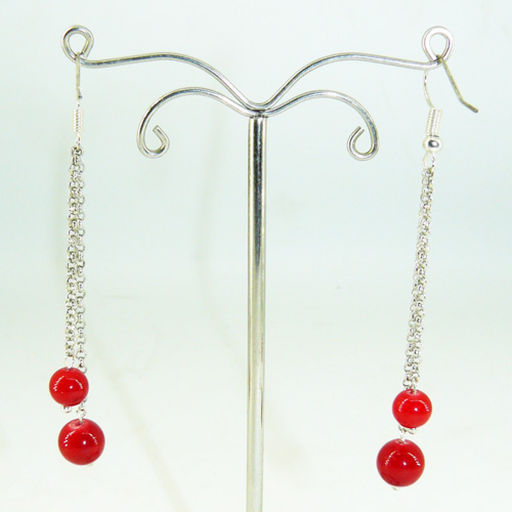 Серьги из коралла диаметр 6-8 мм на цепи - длина 7 см