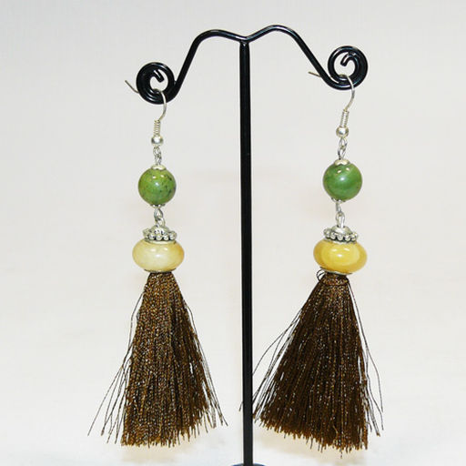 Серьги из нефрита саянского диаметр 10 мм и оникса диаметр 15 мм - длина 9 см