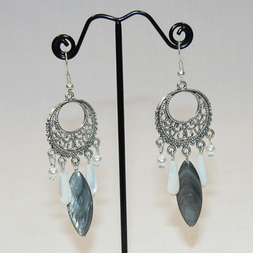 Серьги из перламутра (галиотис) 12х30 мм и жемчуга диаметр 4 мм - длина 8 см