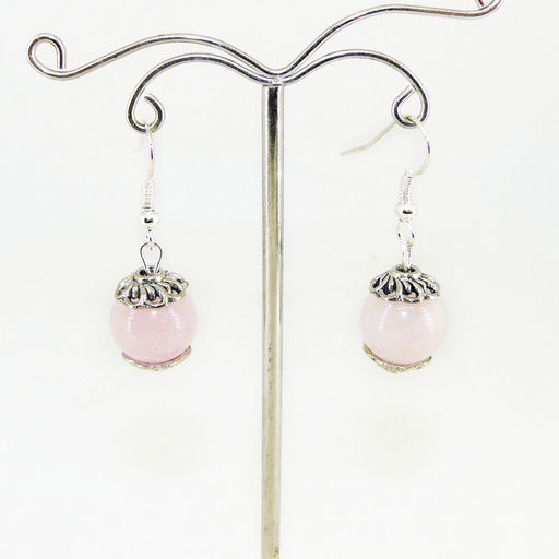 Серьги из розового кварца диаметр 12 мм - длина 4 см