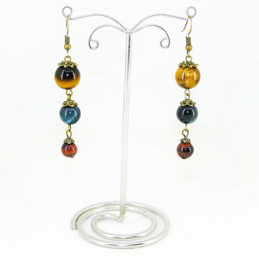 Серьги из тигрового глаза 12 мм, соколиного глаза диаметр 10 мм, бычьего глаза диаметр 8 мм - длина 6 см