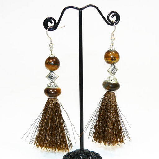 Серьги из тигрового глаза диаметр 10-12 мм - длина 9.5 см