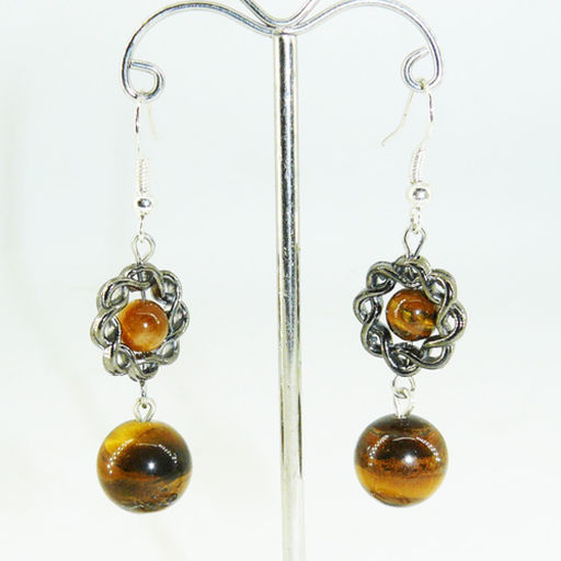 Серьги из тигрового глаза диаметр 6-12 мм с фурнитурой - длина 5 см