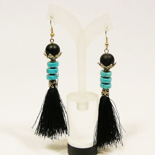 Серьги из хаолита диаметр 10 мм и шунгита диаметр 12 мм - длина 10.5 см