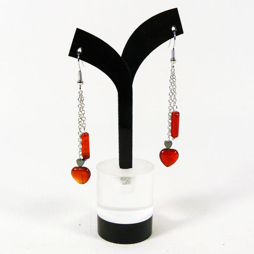 Серьги из сердолика и гематита на цепи - длина 5,5 см
