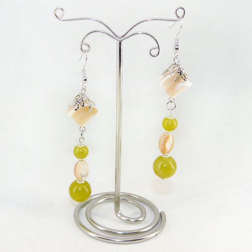 Серьги из перламутра 12х12 мм и оливина диаметр 6-10 мм - длина 7 см