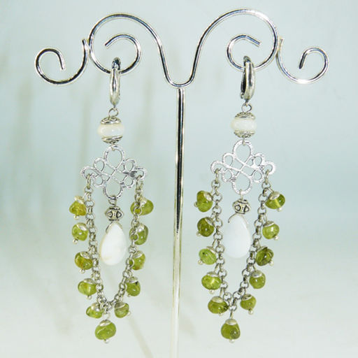 Серьги из хризолита (галтовка) и перламутра 13х18 мм - длина 10 см
