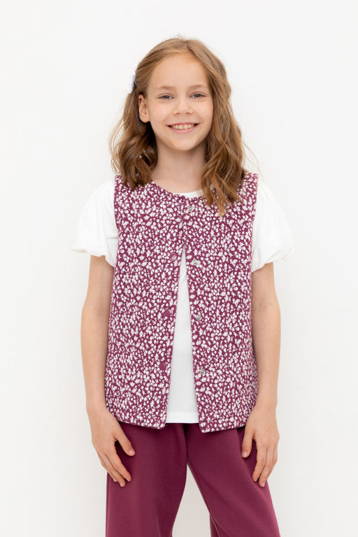Артикул: КР 302575/насыщенная клюква,милые цветочки к499 жилет для дев