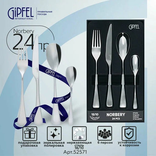 СПЕЦЦЕНА МАЯ! 52571 GIPFEL Набор столовых приборов NORBERY 24 пр. Материал: нерж.сталь 18/10.
