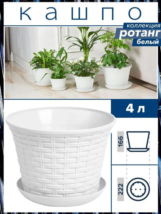 Кашпо круглое "Ротанг" 4,0 л с поддоном белый 364006 /Виолет/