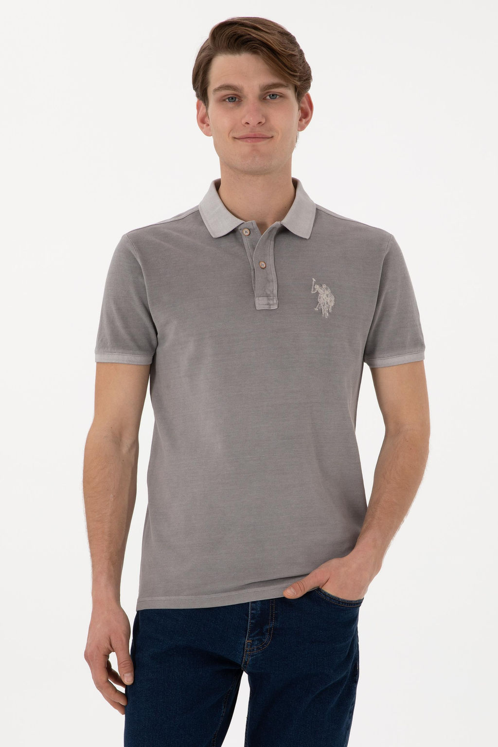 Erkek Slim Fit Polo Yaka Koyu Gri Basic Ti__rt Sepette S_rpriz _ndirim
