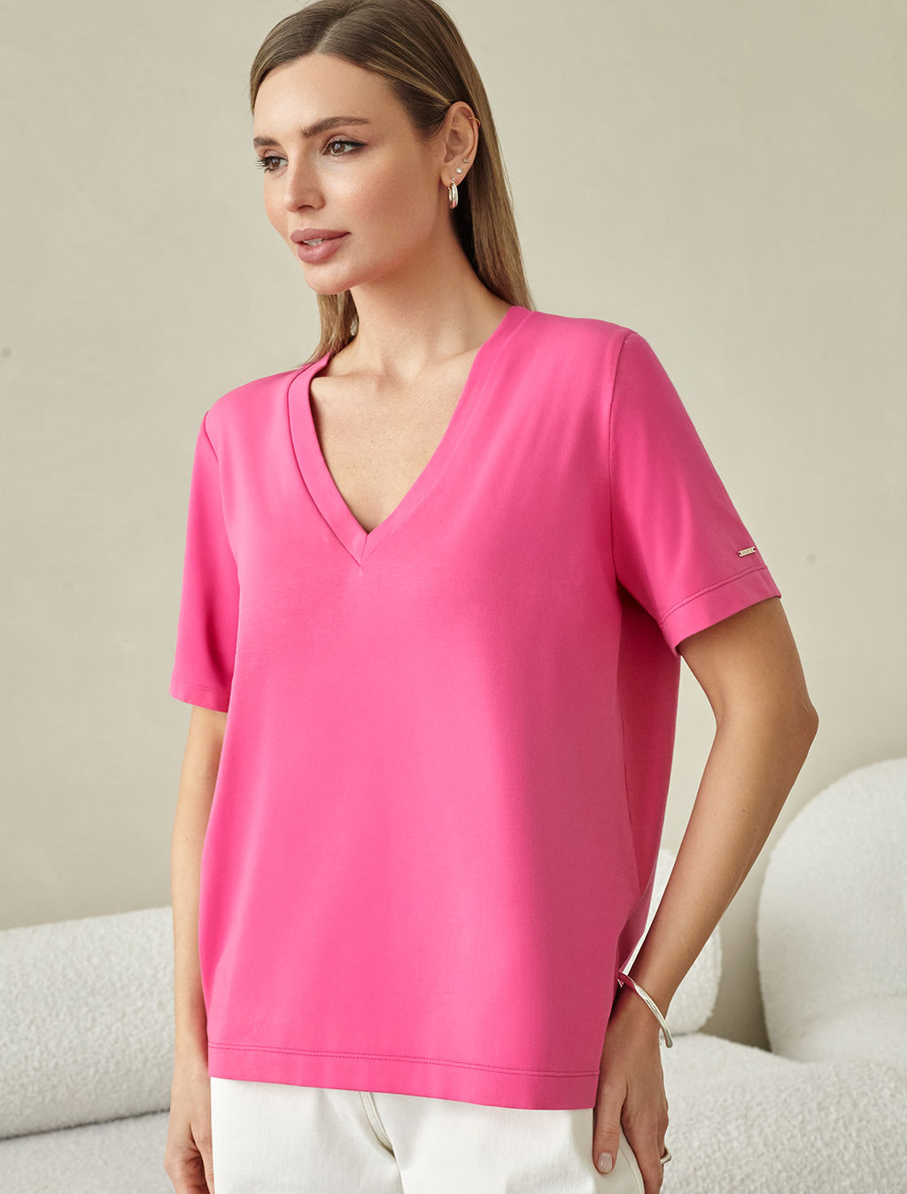 Футболка Vilatte D49.096 из хлопка с эластаном розовая фуксия