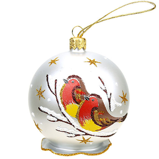 Елочная игрушка шар стеклянная "Птички" д7,5см, юбка-колокольчик, ручная художественная роспись, подарочная упаковка (Россия)