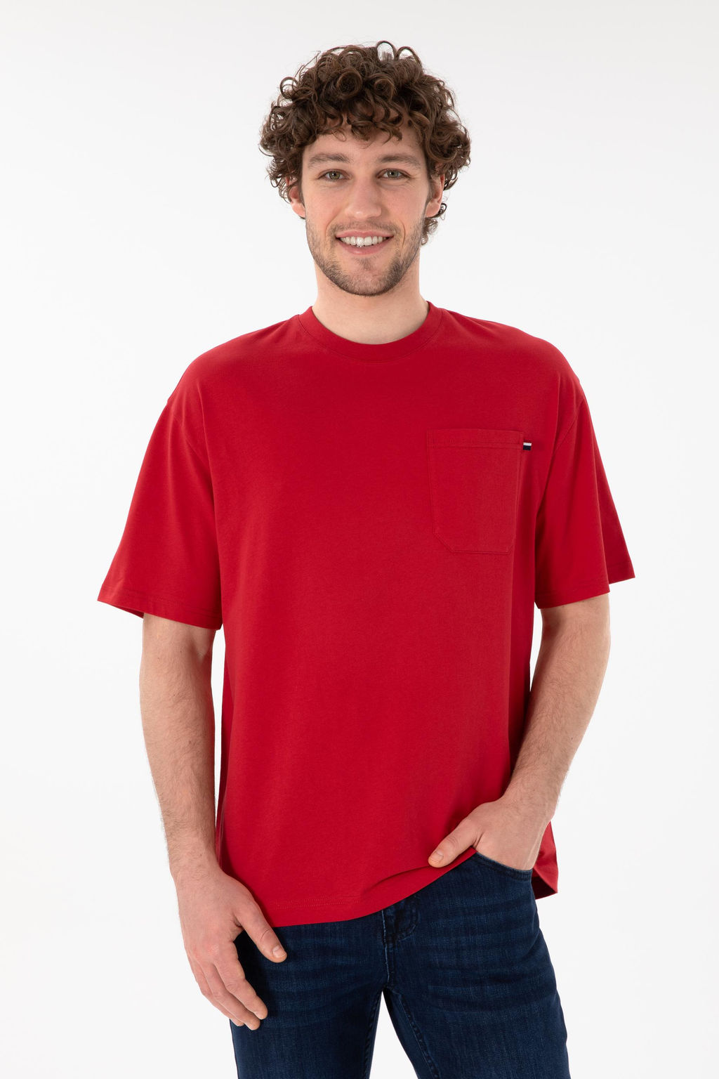Erkek Comfort Fit Bisiklet Yaka K_rm_z_ Ti__rt Sepette S_rpriz _ndirim