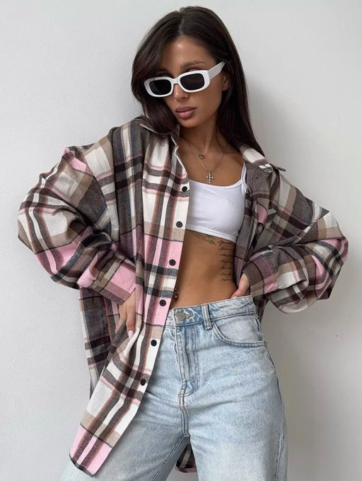 K12702 Рубашка OVER SIZE ТМ_РОЗОВЫЙ