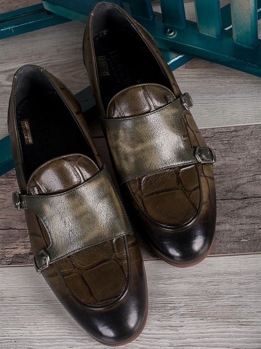 Мужские туфли в стиле классика/ Монки мужские 1509-51-00 Хаки