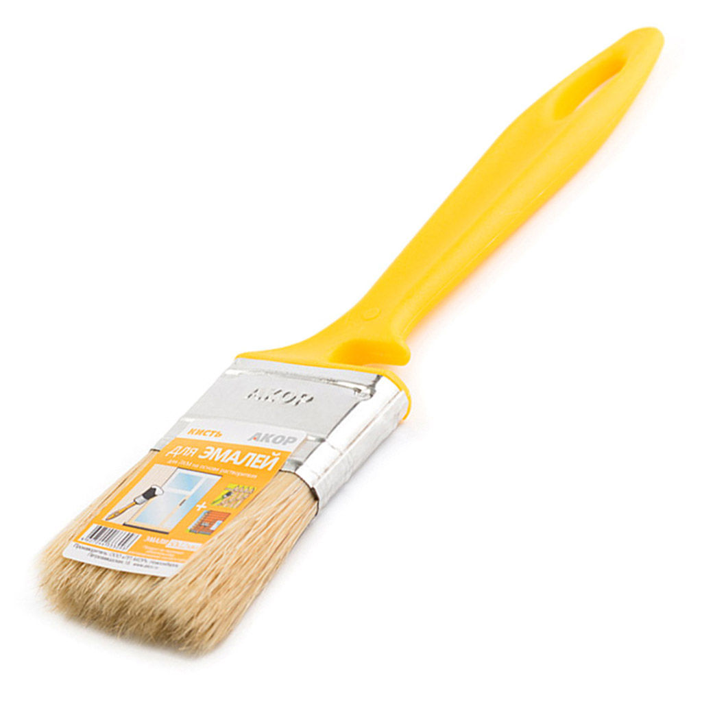 Кисть "Эмали" 25мм, толщина 10мм, натуральная щетина длина 44мм, пластмассовая ручка, желтый (Россия)