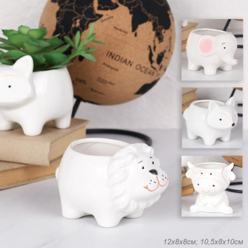 Кашпо 10,5х8x10 см Животные / WN44 /уп 6/72/ белое (Лев )