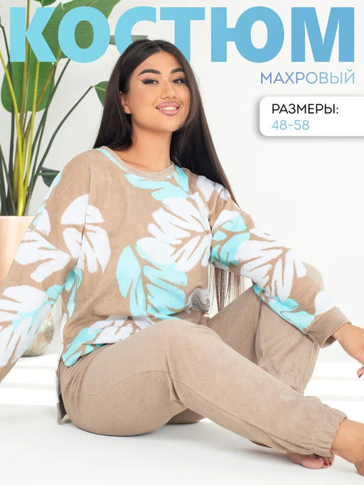 Костюм женский махра с брюками "ЗЕМФИРА" БЕЖЕВЫЙ