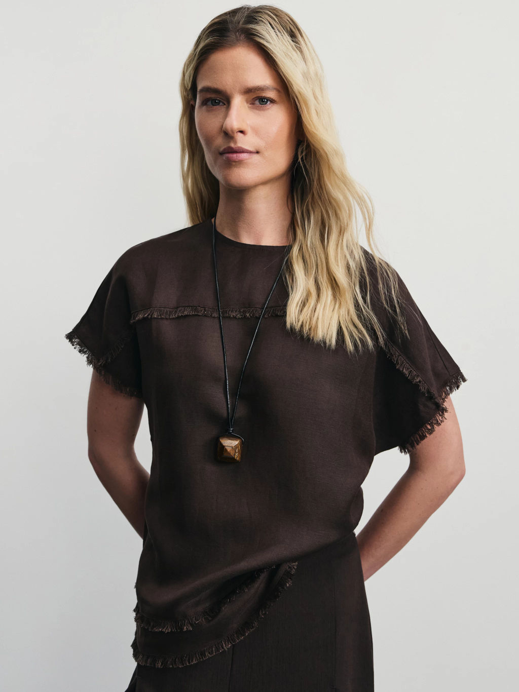 Блузка из вискозы и льна с бахромой / Zarina