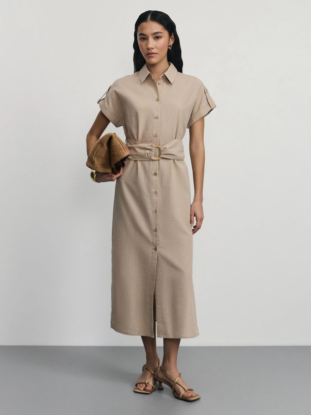 Платье миди из фактурной ткани на поясе / Zarina